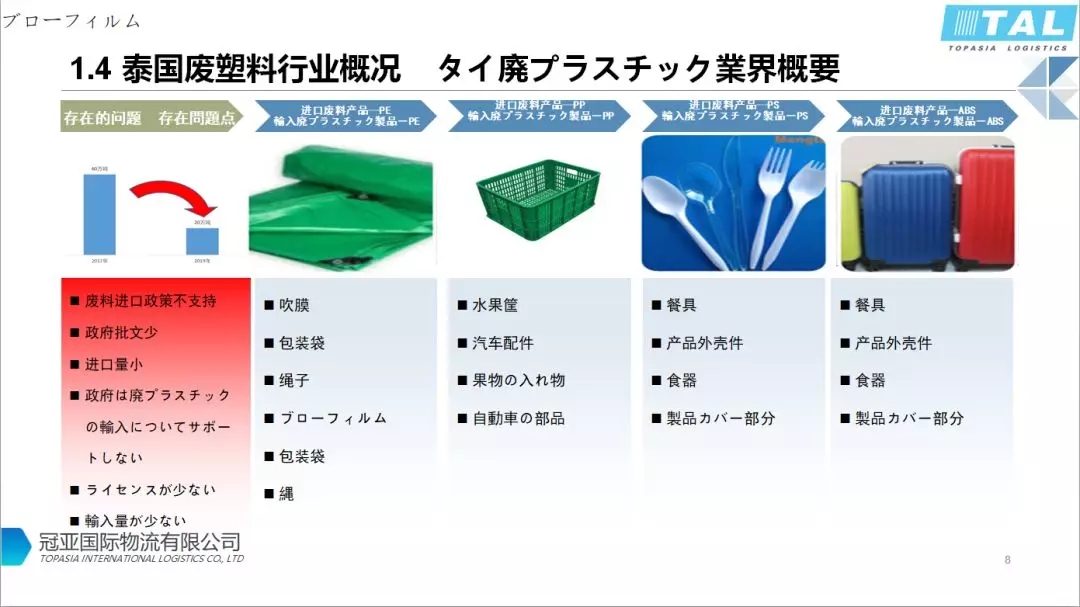 ????????由于本國的產廢資源豐富,所以進口廢料加工后大部分以出口為主,由于泰國政府并不支持海外廢料進口,所以以后會更艱難。