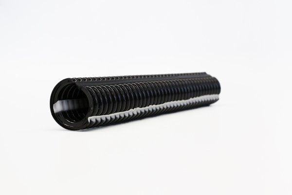 ????????柔性電纜管理系統的新型Polyflex波紋管,特別是用于車輛制造中,標志著Schlemmer Group對TPE組件的要求已經提高。為了避免產生尖銳的邊緣,并使狹縫波紋管安裝速度加快,產品開發人員的設計旨在通過共擠出將PA和TPE結合在一起。