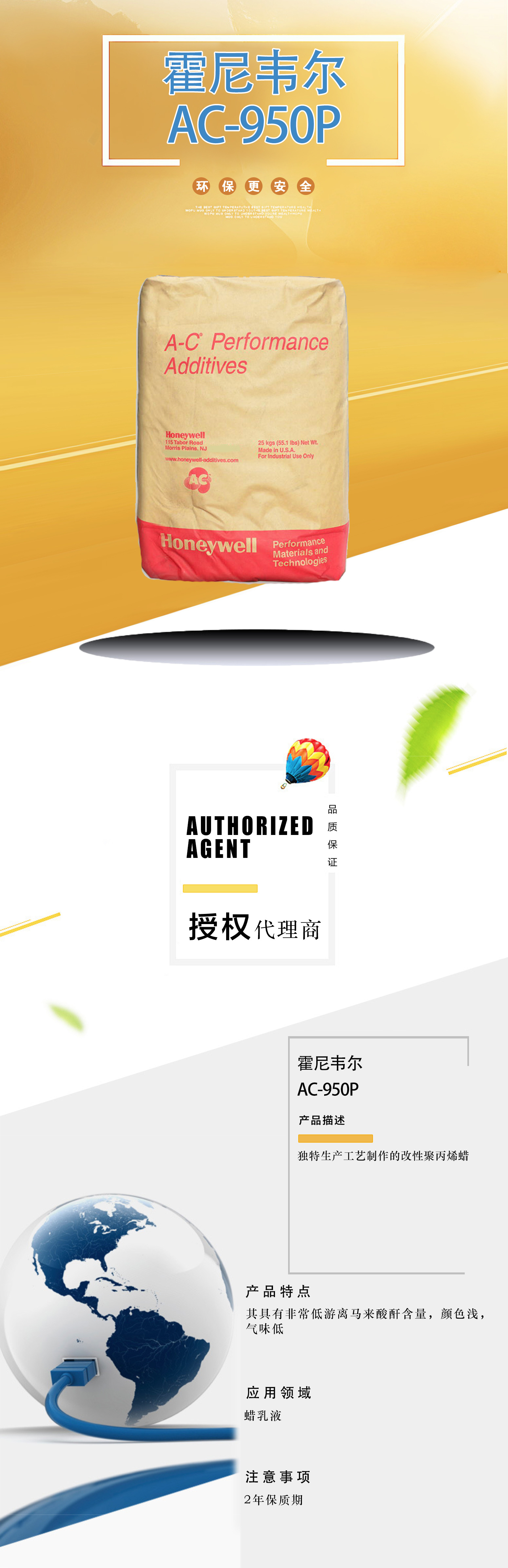 霍尼韋爾  honeywell 丙烯馬來酸酐共聚物 A-C 950P 適用熱熔膠電纜塑料改性