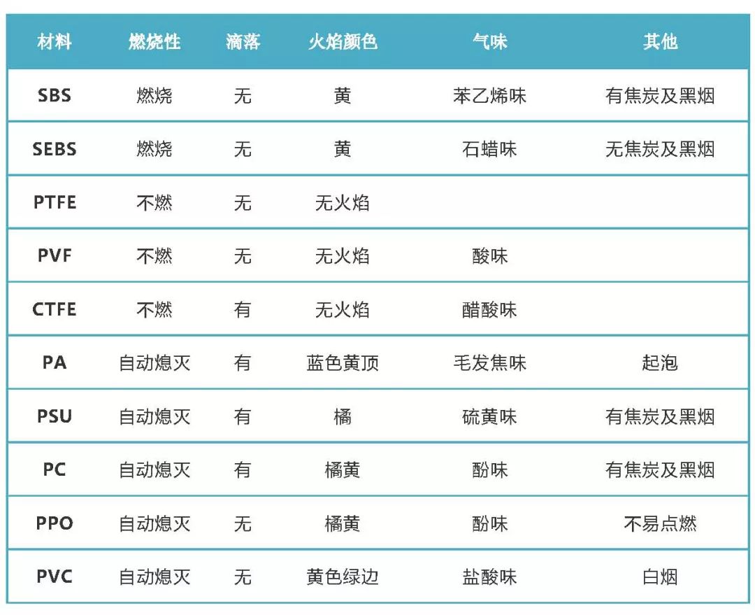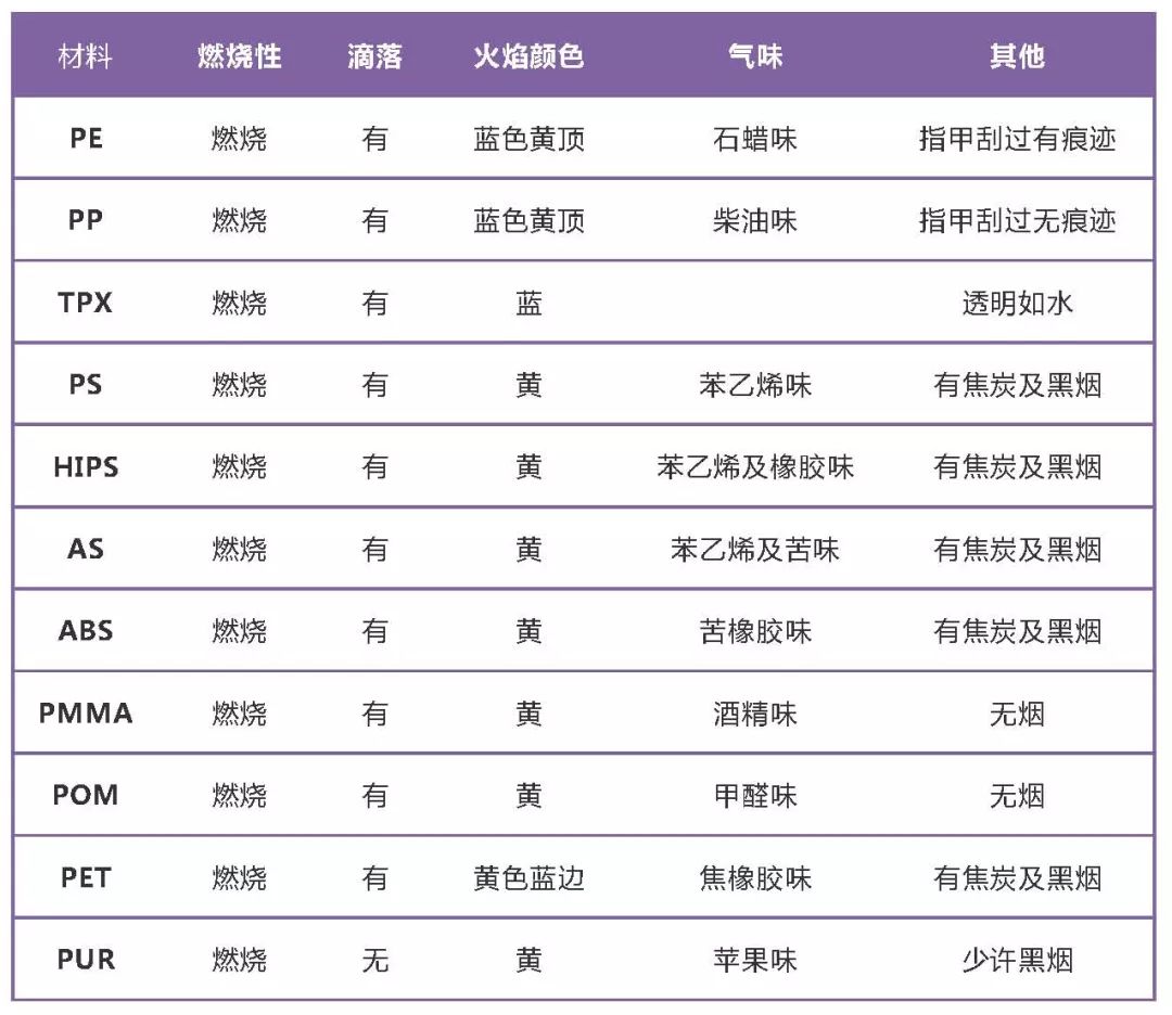 常用塑料的簡易燃燒鑒別方法