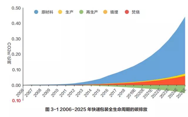 引起快遞包裹量增長的情況相契合。2010 年快遞包裝產生 61.15 萬噸碳排放,2018 年激增到1303.10 萬噸,須種植 7.1 億顆樹木才能中和掉。若不采取有效的綠色化政策,2025 年我國快遞包裝在全生命周期的碳排放量將達到 5706.10萬噸。可見,面對激增的快遞包裝碳排放,電商平臺和快遞公司制定和施行快遞包裝綠色化管理十分緊迫。