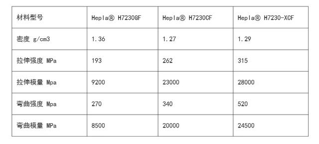 該產(chǎn)品具有優(yōu)異的機械強度與抗沖擊能力,尺寸穩(wěn)定性高、翹曲低,材料性能較進口產(chǎn)品提升30%。以高溫尼龍為基材的Hepla? H9000-XCF系列碳纖維復(fù)合材料,彎曲剛度超過52GPa,彎曲強度高達520MPa,拉伸強度達到360MPa;以PA66為基材的Hepla? H7200-XCF系列拉伸強度達到315MPa。 采用新產(chǎn)品生產(chǎn)的零部件比鋼制零部件輕75%,比鋁合金部件輕40%,可替代大部分金屬,從而為汽車輕量化及其它行業(yè)“以塑代鋼”提供更好的解決方案。