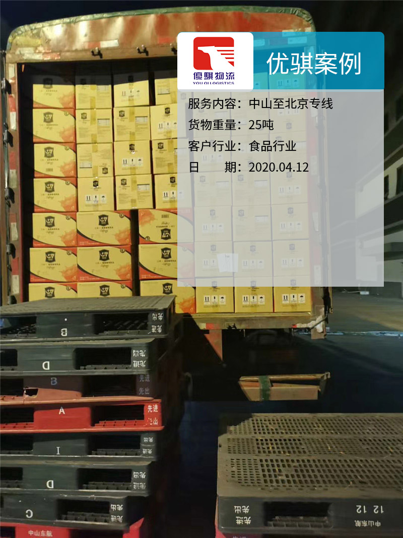 項目:中山至北京物流專線內容:G7進口咖啡國內配送業務行業:食品,進口咖啡重量:30噸時間:2020.04